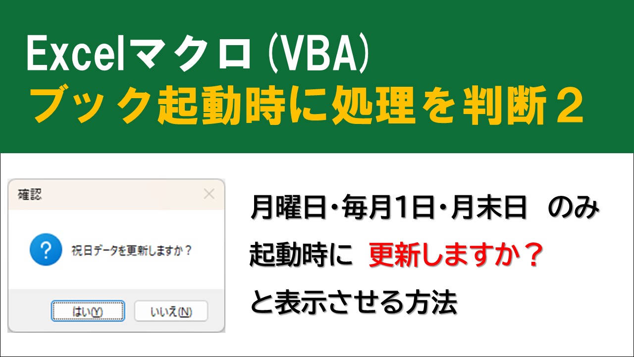 Excelマクロ 月曜日のみブック起動時に処理を判断